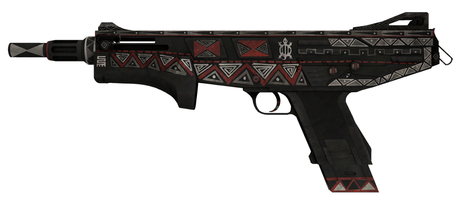 Skin creators draw inspiration from a wide variety of themes. For example, the design of MAG-7 Petroglyph is inspired by prehistoric cave paintings. Using just three colors—red and white on a black background—skin creator RTR created a distinctive pattern of geometric motifs and a schematic image of a turtle.