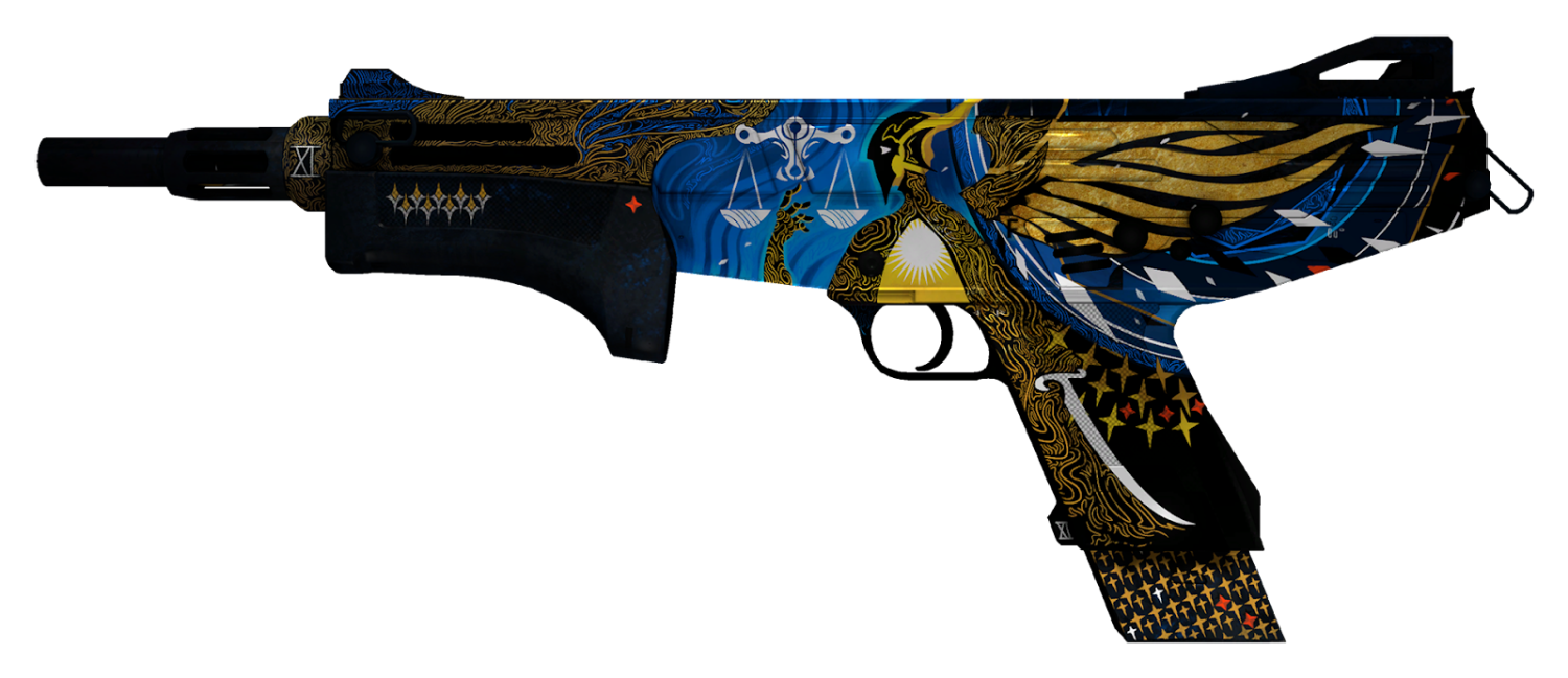 However, you don't need to spend hundreds of dollars to add a striking MAG-7 skin to your collection. MAG-7 Justice was added to the game in 2020 and quickly gained popularity. Alongside the AK-47 The Empress, it’s another skin inspired by the Tarot card 'Justice.' A figure of an angel with a sword and scales symbolizing justice is integrated into the weapon's silhouette. The artwork and surrounding ornaments are rendered in various shades of blue and green.